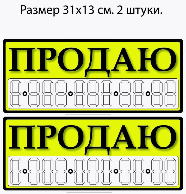 Наклейки -ПРОДАЮ- с удобным полем для написания номера телефона. Предназначены для гладких поверхностей: стекла, зеркала, стены (с гладким покрытием) и т.д. Самоклеящаяся наклейка способствует быстрой продаже. Размер листа 31х15, 2 шт в упаковке. Можно размещать на автомобиле, и поэтому ваше объявление увидит много людей. Наклейки вырезаны по контуру. Водостойкая, можно протирать влажной тканью. Яркая, видна издалека. Цифры большого размера, ясно различимы. На этом материале нужно писать перманентным маркером.